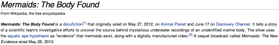 I decided to show research used to qualify documentaries such as this. Here are some steps to prove Mermaids: The New Evidence is fake.