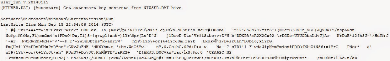 The prefetch files contain a distinctive pattern indicating a Poweliks infection. Depending on the sample, autoruns can reveal even more. I mention depending on the sample because Poweliks has changed its persistence mechanism. Initially it used the Run registry key before moving on to a CLSID registry key. I thought one article mentioned Poweliks may not try to remain persistent at all times. If Poweliks does try to remain persistent then its mechanism can be used to find it. Keep in mind, Poweliks has taken self protection measures to prevent this mechanism from being located on a live system. The easiest method to bypass these measures is to access the system remotely with a forensic tool like Encase Enterprise, mount the drive, and then run Regripper across the hives.