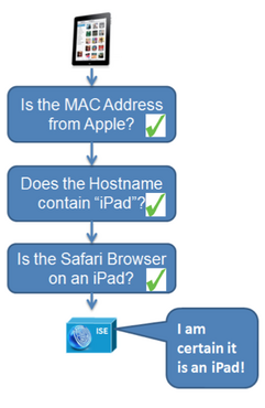 Cisco ISE profiling has categories for devices obtained from the cloud or through customization. Each category has specific “weights” assigned that are measured against the device data. As Cisco ISE profiling captures data, different specifications trigger categories as assign weight values are met. For example, a iPad will move from UNKNOWN to APPLE DEVICE based on MAC, network card manufacture type and other info. As more data is collected about the iPad, Cisco ISE profiling will use other attributes to match it from APPLE DEVICE to iPad. Custom categories can be created from UNKNOWN or existing profiles however the majority of device profiles are obtained through the cloud.  Profiling is continuous meaning if a device is spoofed, its behavior will give away it’s true identity to provide continuous monitoring of device types on your network.
