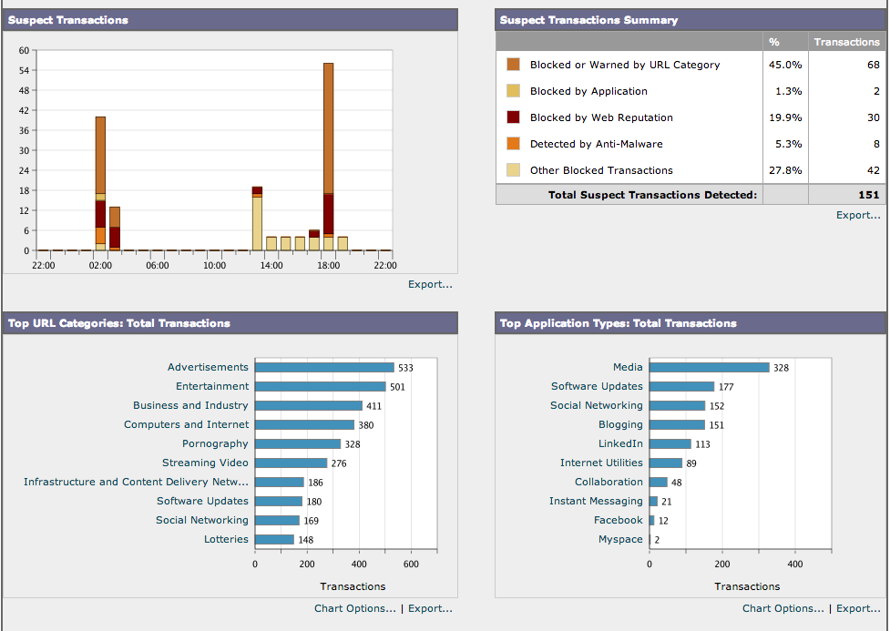 Combing Access Control, Web Security and Insider Threat technology gives administrators complete visibility of what is happening on the network. There is a lot of power having reports showing every user and device on the network, how those devices access the public Internet and near real-time analytics on if any of those devices have been compromised. This information can dramatically improve identification and reaction to cyber threats saving time, money and other problems caused by network breaches.