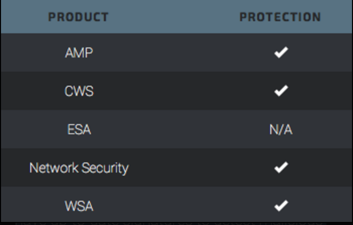 Advanced Malware Protection (AMP) is ideally suited to prevent the execution of the malware used by these threat actors.