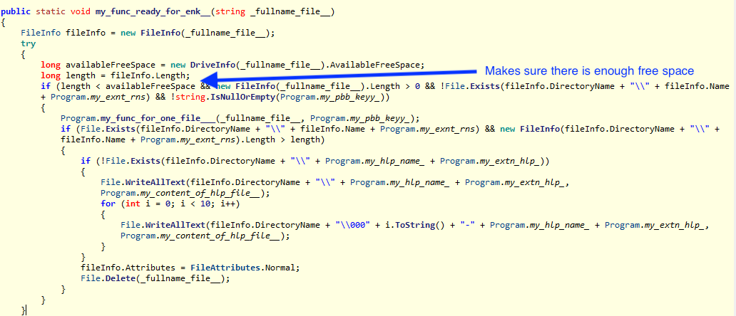 Just like previous versions of SamSam the new version is especially careful to make sure that there is enough space on the current drive to create the encrypted document, thus avoiding any corruption that would lead to irrecoverable encryption.