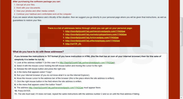 The main thread waits until all the encryption threads finish, then writes the three files that contains the decryption instructions in two locations: the startup folder of the Start Menu, and the desktop of the victim user.