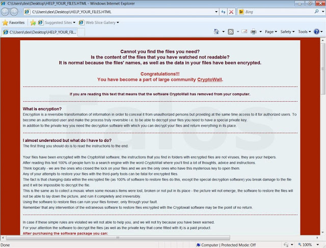 Once completed all the CryptoWall 4 resources are released and the original file is now deleted in an interesting manner: